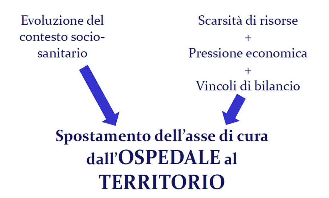 In questo modo, si passa da logiche verticali, tipiche di una struttura funzionale aziendale, a un’integrazione di soggetti in un territorio che non guarda solo alla logistica e ha come punto centrale di riferimento la struttura sanitaria ospedaliera.