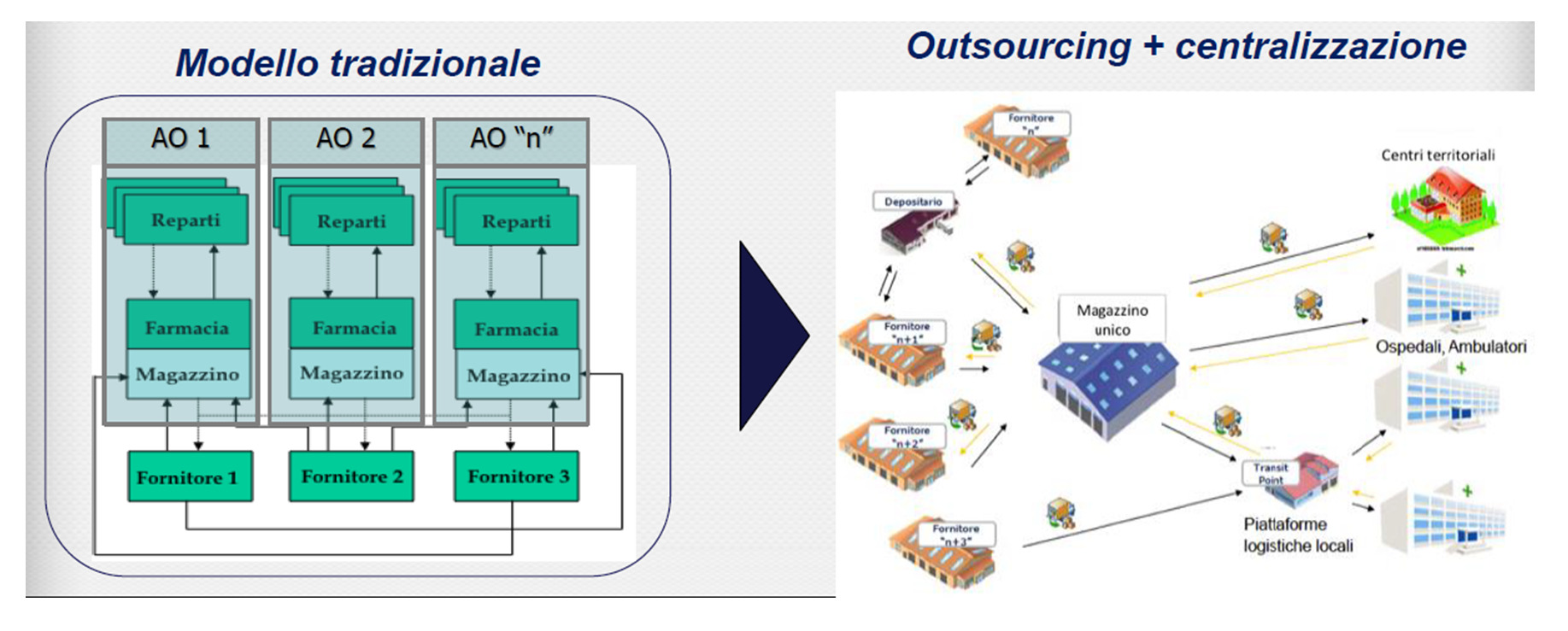 Alcune Regioni hanno avuto una visione logistica più ampia: la Toscana, l’Emilia-Romagna e il Friuli-Venezia Giulia sono alcune delle Regioni che hanno implementato soluzioni più avanzate. Queste sono di vario tipo: alcune hanno adottato la soluzione dell’Azienda Zero, ad esempio il Veneto, altre la Centrale di Acquisto o la Centrale di Committenza o la creazione di Consorzi tra Aziende Sanitarie.